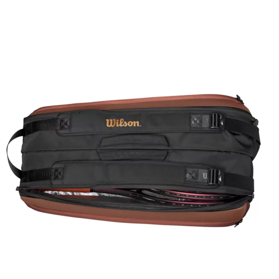 • Lämpösuojaus: Wilson Super Tour Pro Staff V14 Racket Bag 9PK:ssa on lämpösuojattu osasto, joka suojaa mailoja äärimmäisiltä lämpötilan vaihteluilta. Tämä on tärkeää, jotta mailat pysyvät hyvässä kunnossa kaikissa sääolosuhteissa.