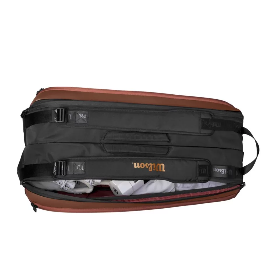 Wilson Super Tour Pro Staff V14 Racket Bag 9PK on korkealaatuinen ja tyylikäs mailalaukku, joka on suunniteltu erityisesti Pro Staff -sarjan pelaajille ja ammattilaisille. Tämä laukku yhdistää käytännöllisyyden, kestävyyden ja tyylin, ja se tarjoaa tilaa jopa yhdeksälle mailalle sekä muille varusteille.